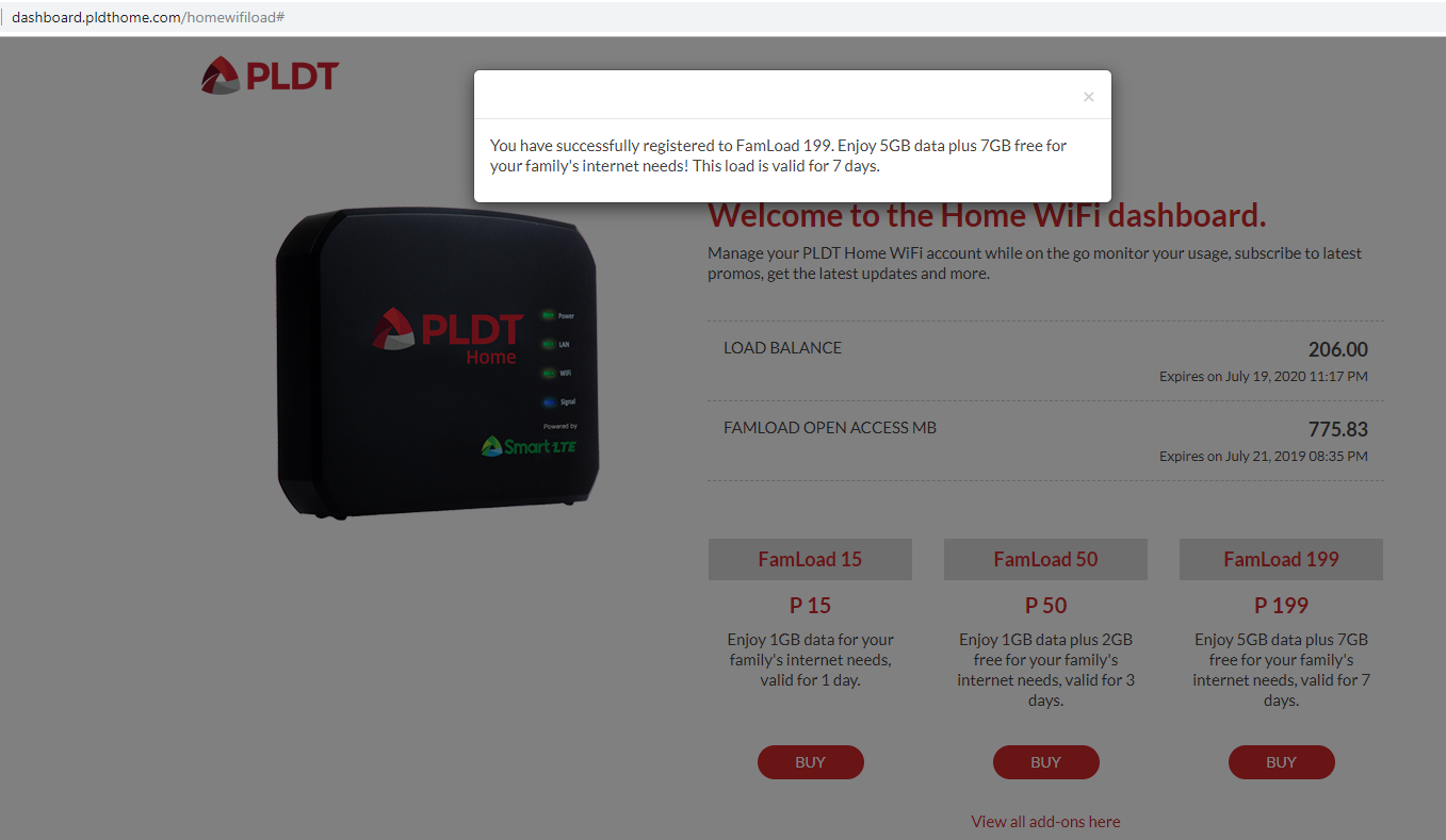 - Access the Home WiFi dashboard at pldthome.com/homewifiload to check your load balance.