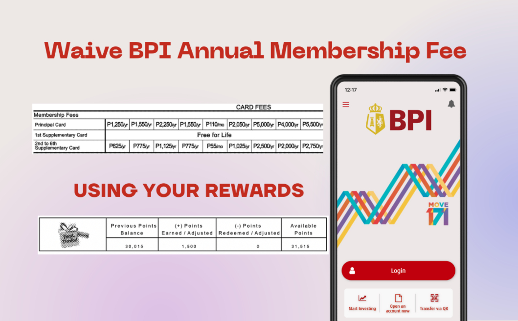 To reverse your yearly charge, simply call BPI’s customer service line at (02) 889-1000. A representative will check your account information and confirm that the fee will be reimbursed within 6 banking days. The membership fees and reward points balance can be found on your monthly bank statement.