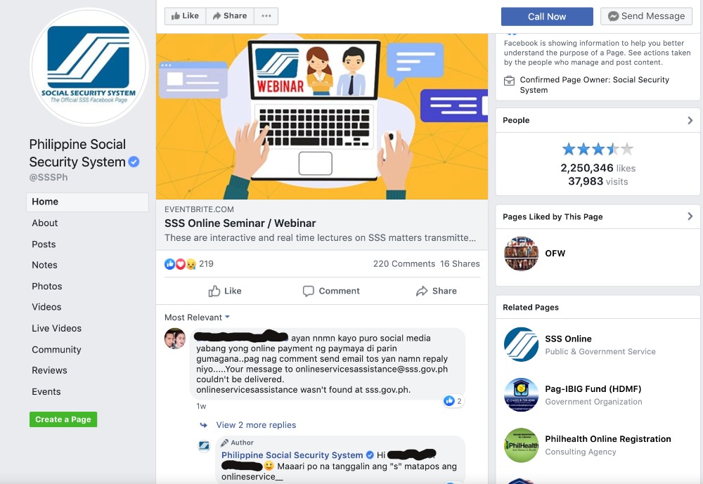 Let’s dig deeper. You will notice that SSS is the earliest adopter of Facebook as a communication channel among all government agencies. The page was created in June of 2009. SSS has to deal with a lot of inquiries on a daily basis so using a social networking site that many Filipinos use could help them save cost and make public communication easier.