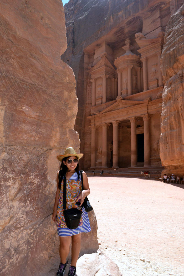 Kazneh or The Treasury  of Petra. After navigating the breathtaking pathway of hemmed cliffs soaring up to 80 meters, Petra dazzles visitors even more with the most beautiful monument – Al Kazneh or the Treasury. No matter how tall you are, you’d feel dwarfed by your face to face encounter with the huge, elaborately carved facade of Al Kazneh. Undoubtedly, Al Kazneh is a product of ancient engineering genius.